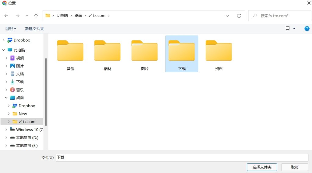 然后在弹窗中选择自己需要的下载位置,点击 选择文件夹,即可更改为新的Chrome下载位置