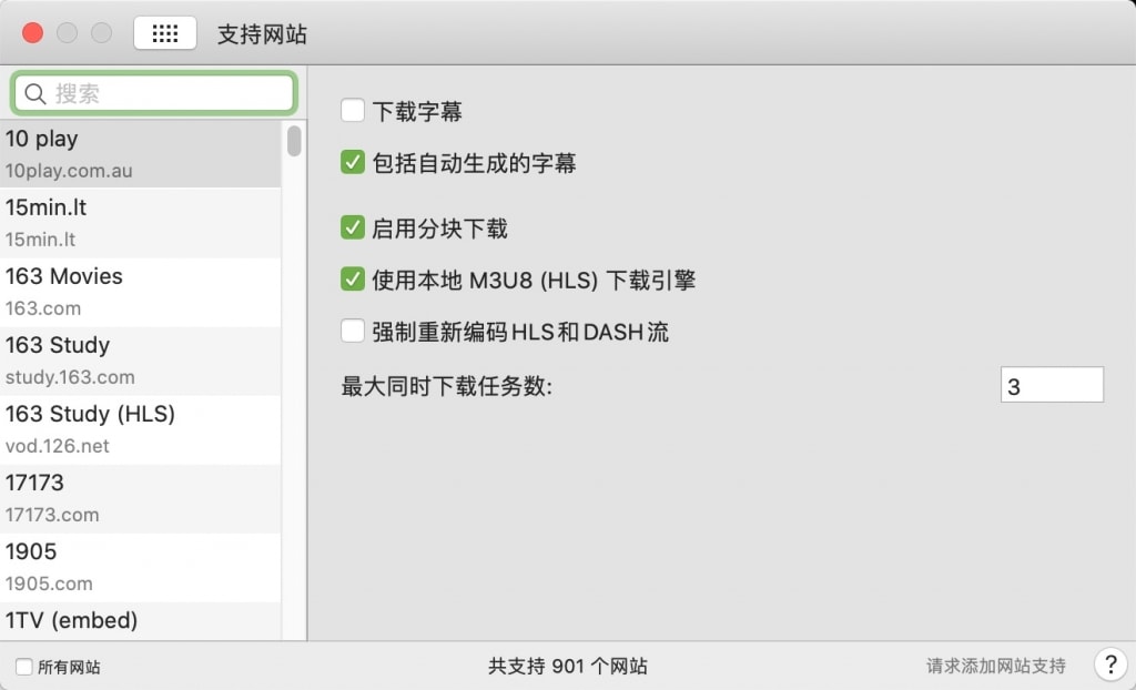 Downie 支持非常多的站点,包括Bilibili、优酷等超过900个网站,不管是视频平台、社交媒体还是独立站点,大部分的视频都能自动下载,我们无需再针对不同的网站找工具,所有的链接都可以放到软件中下载