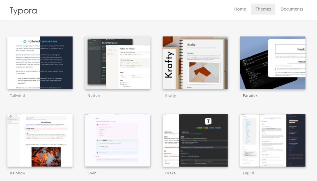 那么该在哪里下载主题呢?Typora 官网其实就提供了一个主题中心,你可以在这里找到很多漂亮的主题并免费下载它们