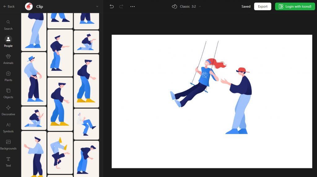 Vector Creator 提供了超过3000个素材,包含不同类别,比如人物、动物、植物、背景、装饰等, 可以快速找到你需要的素材